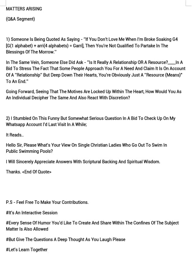 More specifically, never seek God for material benefits (i.e house, car, shoe, clothe, et cetera), or even plan to use him as a means to achieve an end (i.e success, marriage, anointing, power, fame, whatever).